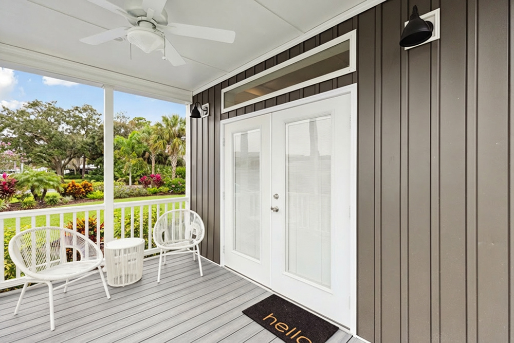 The Sidney model has 1 Bed and 1 Bath. This 493 square foot Park Model home is available for delivery in Florida.
