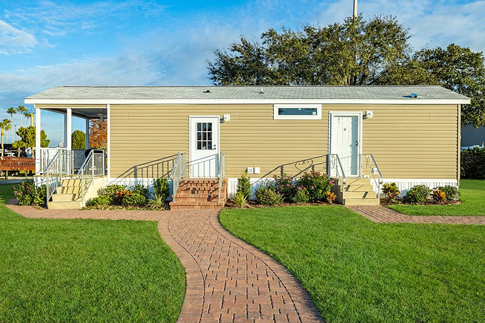 The Wescott model has 1 Bed and 1 Bath. This 499 square foot Park Model HUD home is available for delivery in Florida.